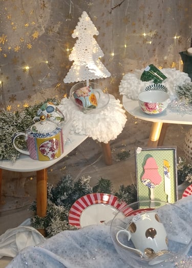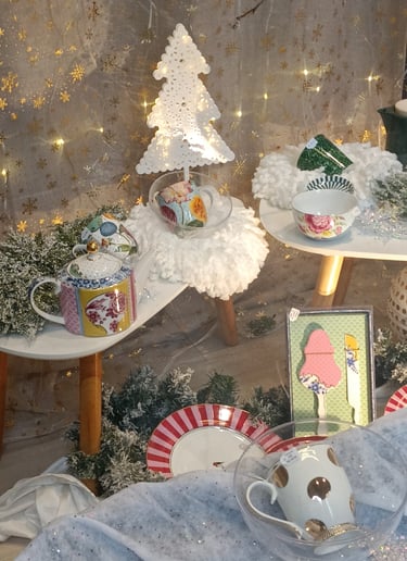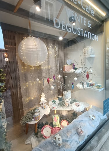 Décoration de la boutique de thé/café UMAMI CAHORS, décembre 2025.