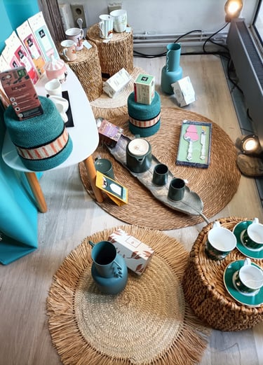 Décoration de la boutique de thé/café UMAMI CAHORS, septembre 2025.